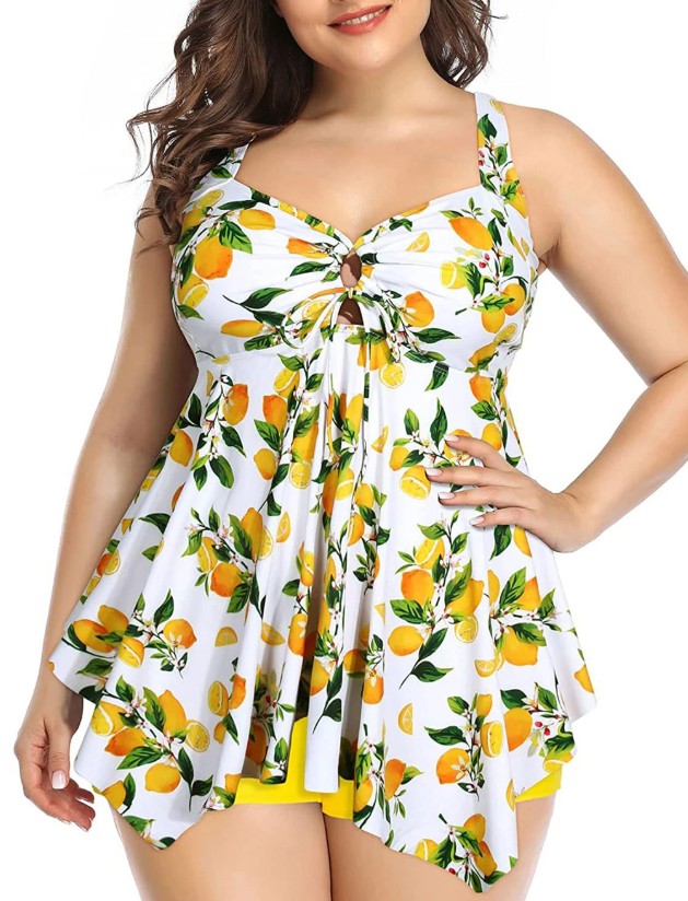 Plus Size Women’s Tankini 2025 Suzanne Yellow White with Lemons