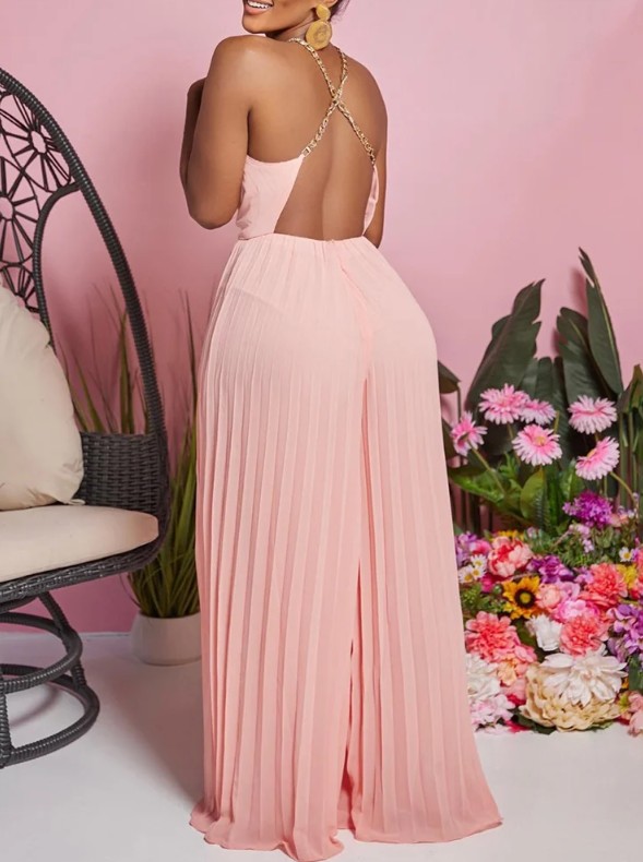 Spaghetti strap pleated one-piece 2025 Elegant in pink