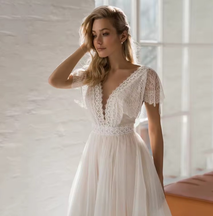 Boho Style Empire Brautkleid Hanneke aus Tüll mit Schleppe