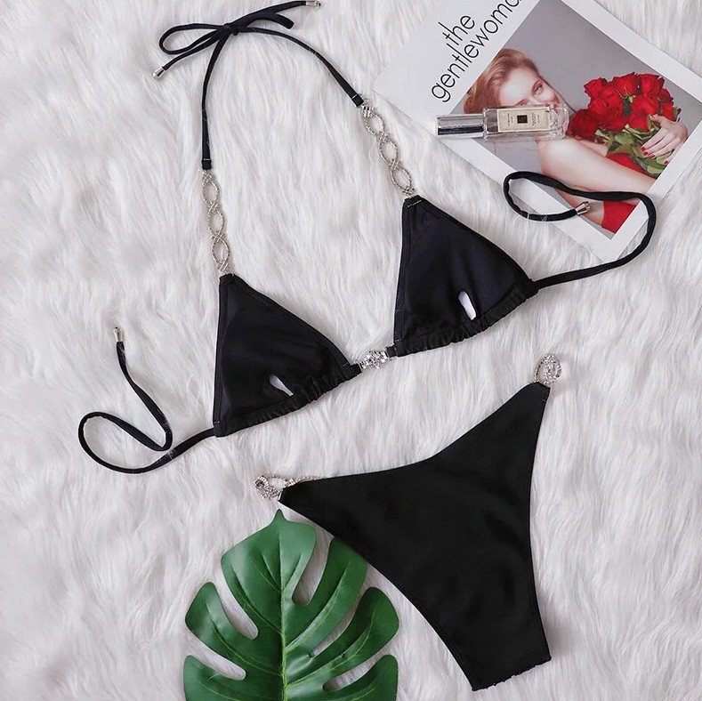 Halterneck Bikini 2025 Saskia in Schwarz mit Strass