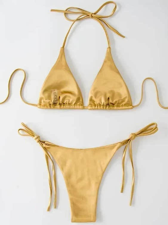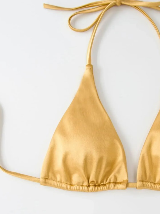 Metallic Satin Halterneck Bikini 2025 in Yellow