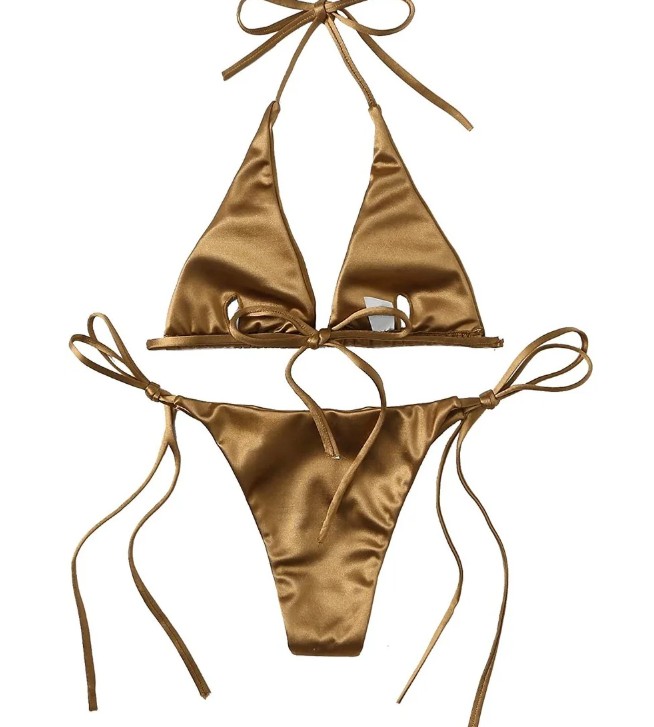 Metallic Satin Halterneck Bikini 2025 in Gold