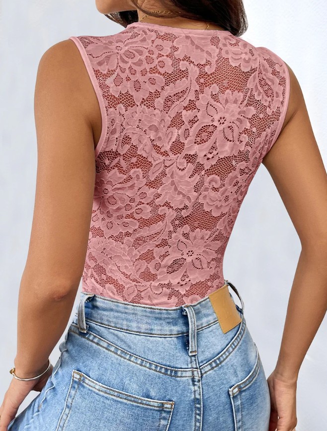 V Ausschnitt Damen Body Elegant aus Spitze in Rosa