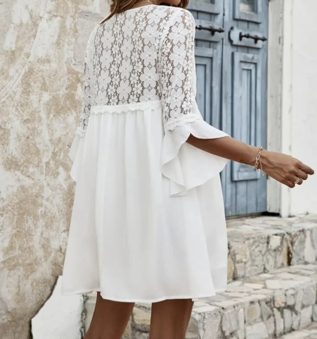Weißes Tunika Sommerkleid Kurz mit Flare Ärmeln