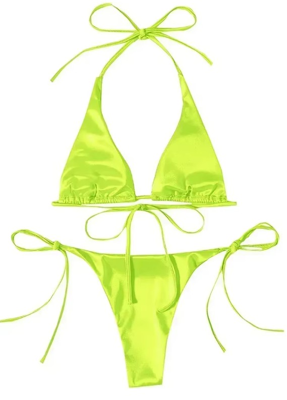 Metallic Satin Halterneck Bikini 2025 in Neon Green
