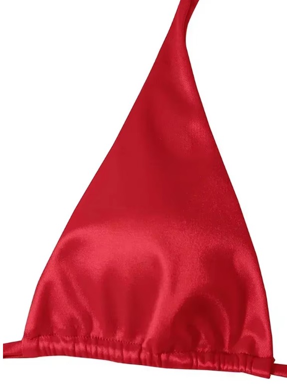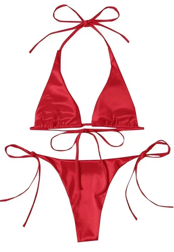 Metallic Satin Halterneck Bikini 2025 in Red