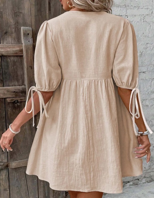 Süßes Baumwoll Tunika Sommerkleid Kurz mit Ärmeln in Beige