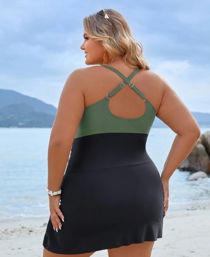 Women’s Plus Size Cross Strap Tankini in Green Black