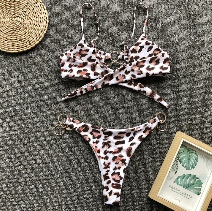 Brazilian Triangle Bikini Leo Pattern with Metal Rings