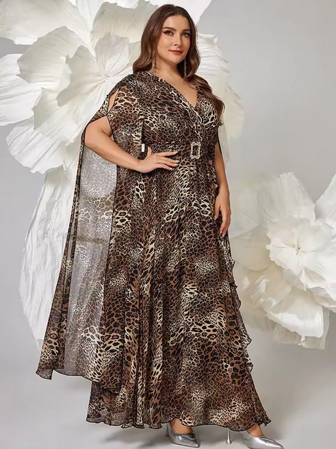 Leopardmuster Maxi Chiffon Kleid Elia Elegant Lang