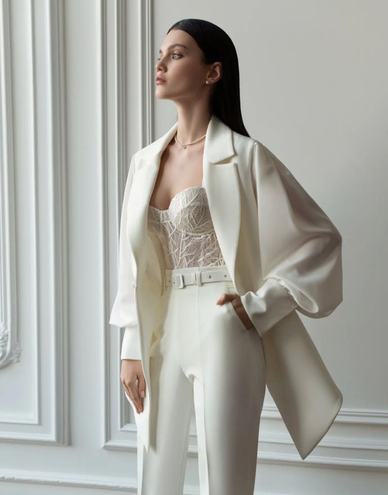 Registry office fashion Elegant tuxedo pantsuit Giselle for the bride in a