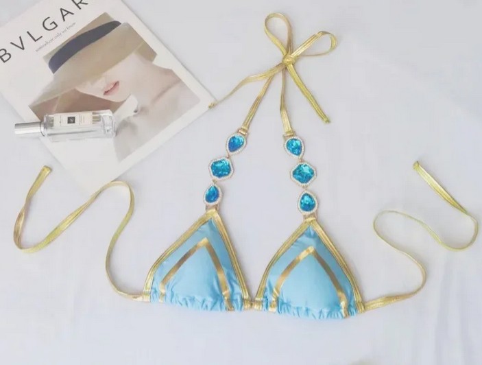 Halterneck Bikini 2025 Samia zum Binden mit Strass in Hellblau Gold