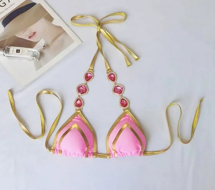 Halterneck Bikini 2025 Samia with tie and rhinestones in pink gold