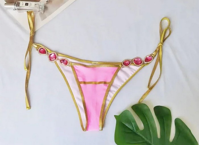 Halterneck Bikini 2025 Samia zum Binden mit Strass in Pink Gold