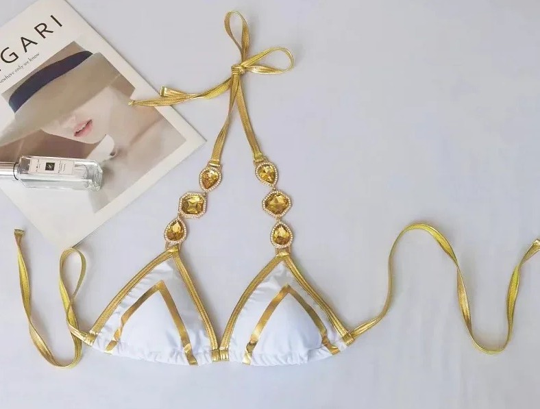 Halterneck Bikini 2025 Samia to tie with rhinestones in white gold