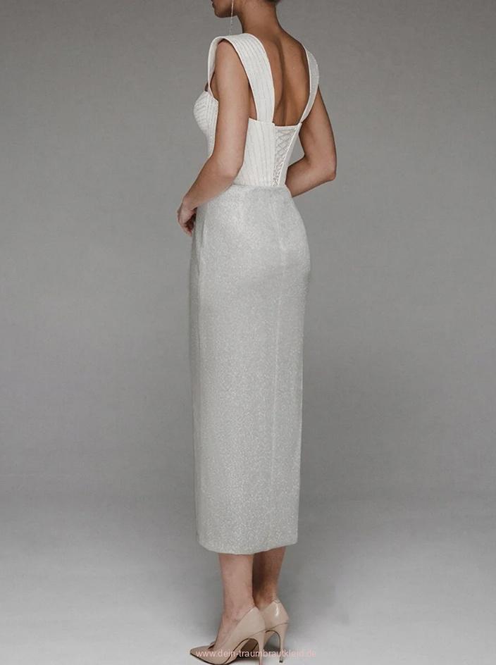 I Linie Glitzer Standesamtkleid Lillesol Wadenlang in Silber Weiß