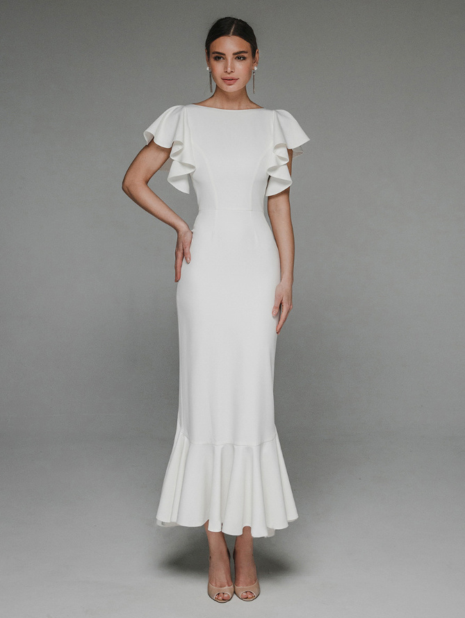 Fit and flare registry office dress for the bride with crisscross pattern backless