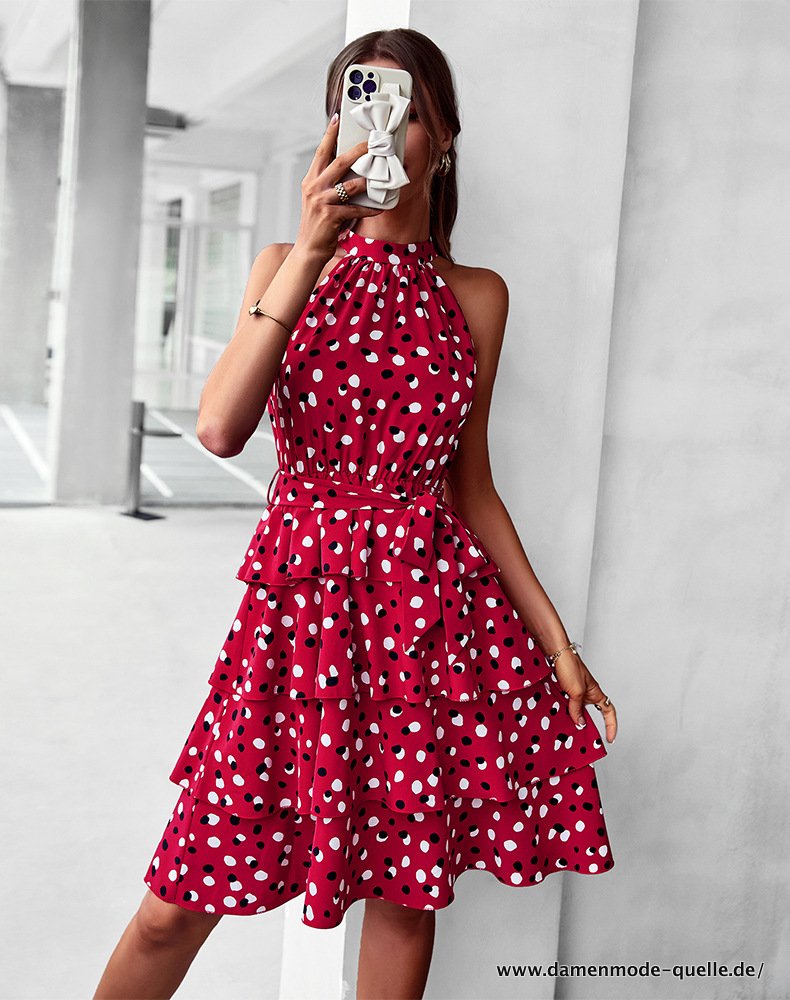 Sexy Ärmel Party und Hochzeit Kleid Sommer Hohe Taille Rot