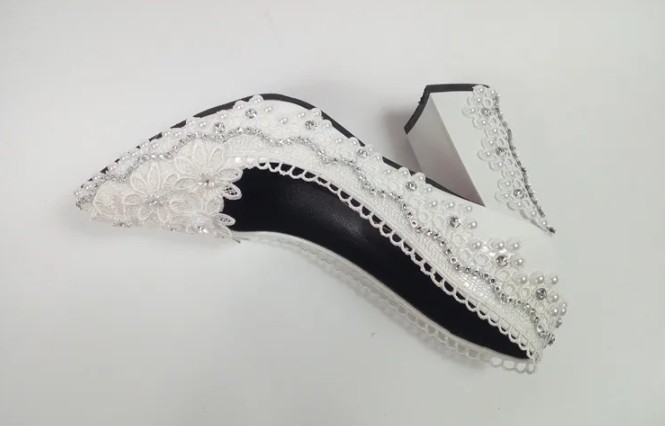 Brautschuhe Hochzeit Schuhe Hedda High Heels mit Perlen und Blumen