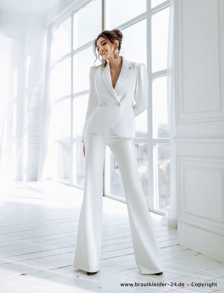 Standesamtoutfit Eleganter Hosenanzug für die Braut in Weiß