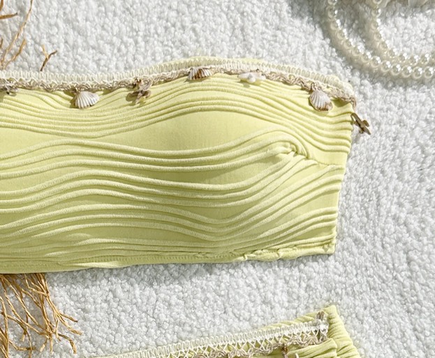 Bandeau Bikini Samira in Gelb mit Muscheln und Seesterne