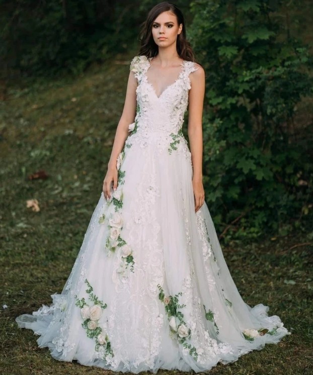 A Linie Prinzessin Brautkleid Helia mit 3D Blumen und Schleppe