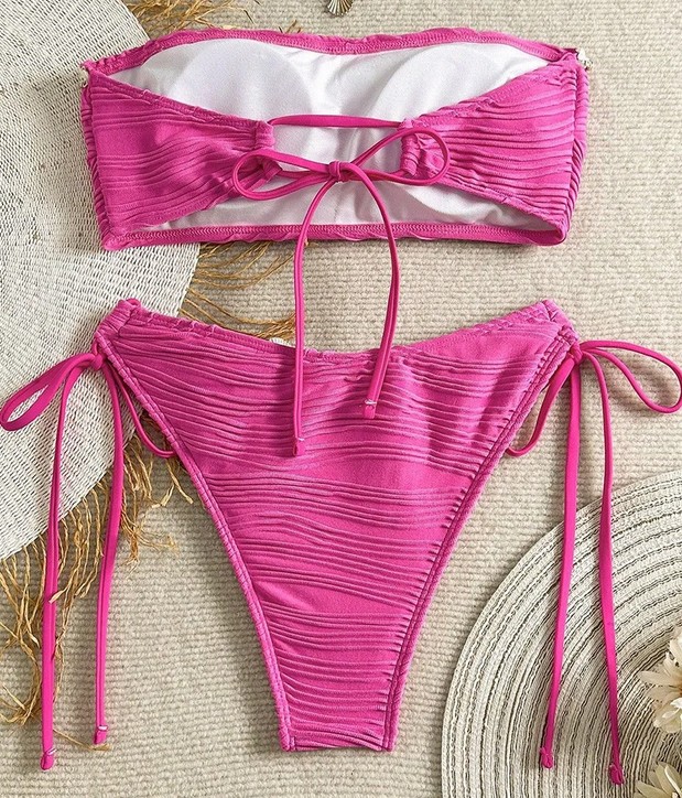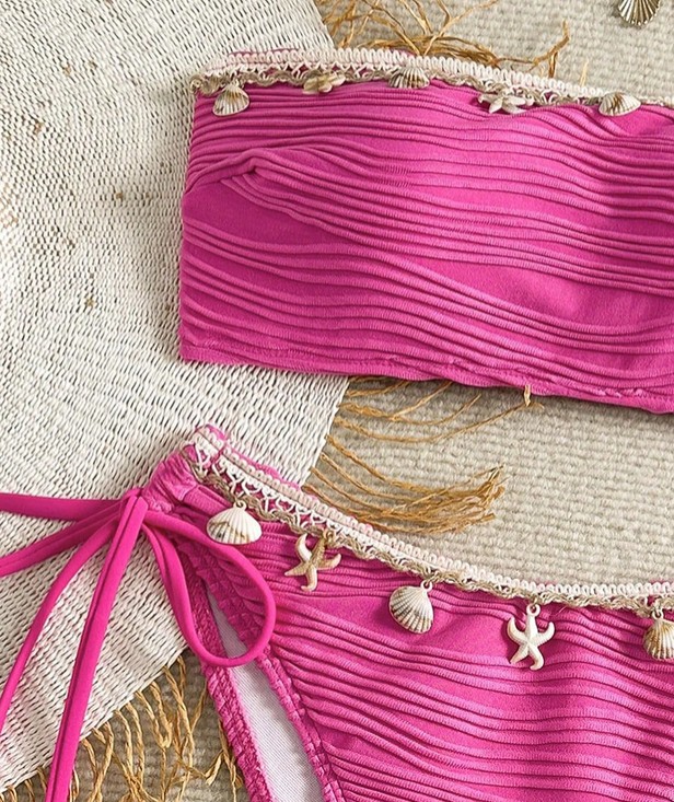 Bandeau Bikini Samira in Pink mit Muscheln und Seesterne