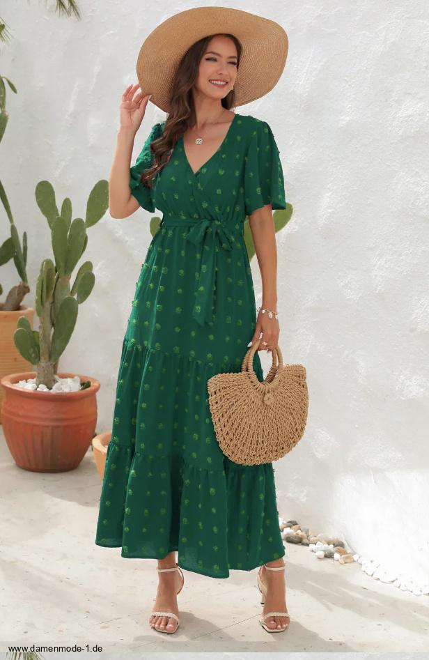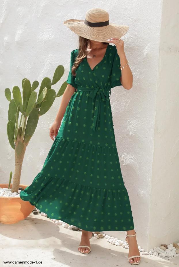 A Linie Kurzarm Sommerkleid Nele Lang in Dunkelgrün