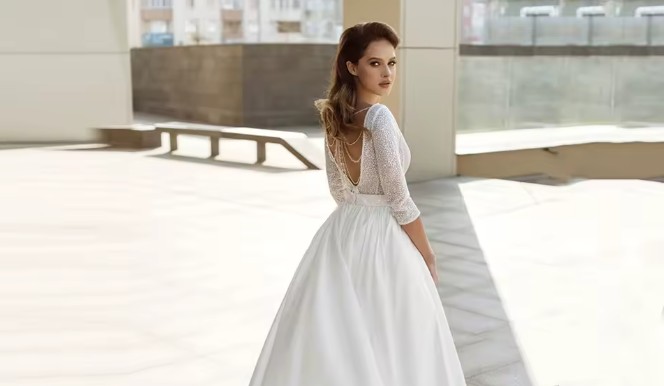 A-line V-neck glitter wedding dress Daria with sleeves