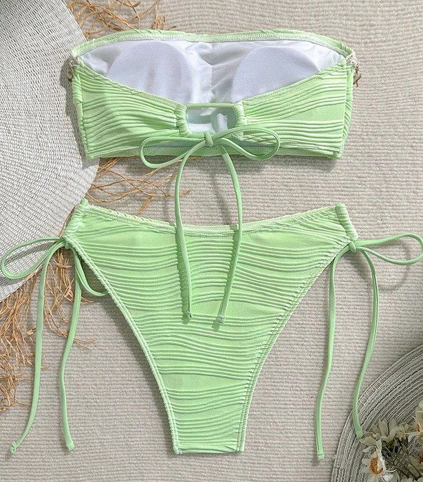 Bandeau Bikini Samira in Hellgrün mit Muscheln und Seesterne