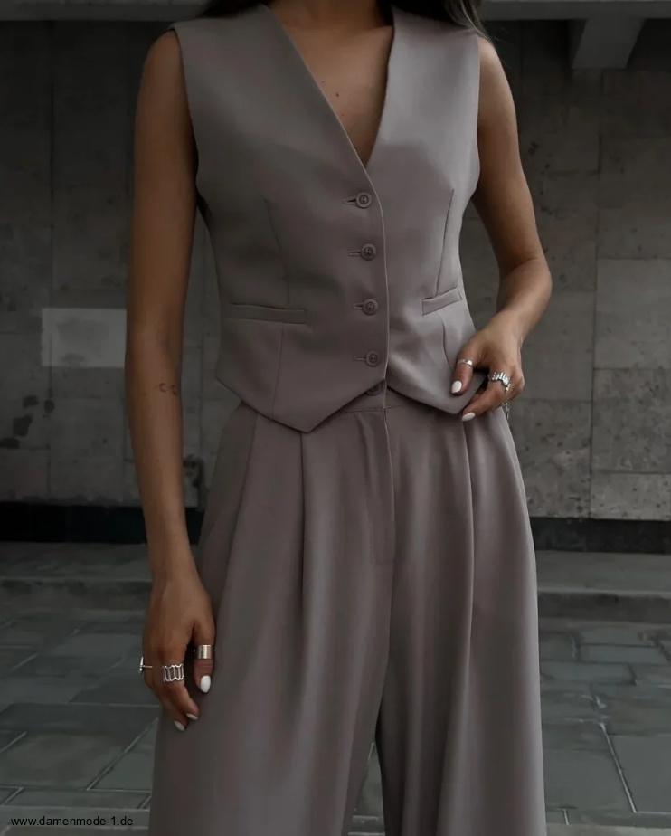 Damen Hosenanzug mit Weste Lässig in Khaki
