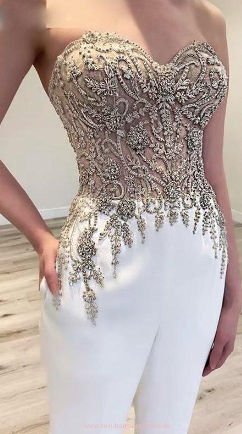I Linie Braut Einteiler Overall Schulterfrei mit Applikationen