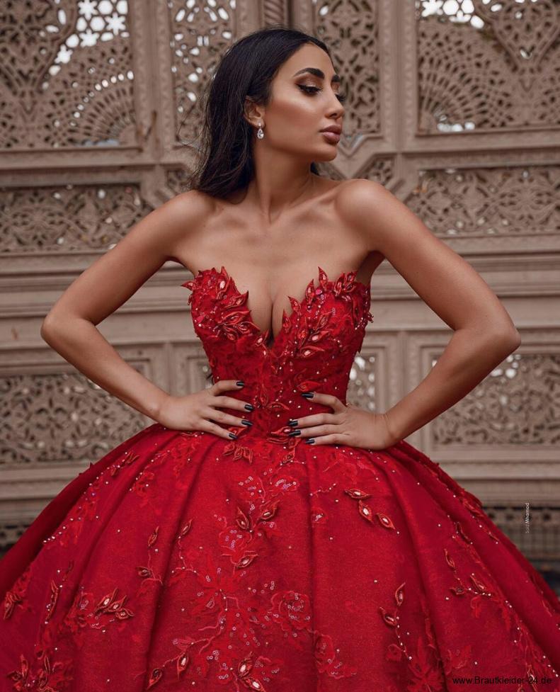 Bustie Ballkleid Brautkleid mit 3D Blumen in Rot