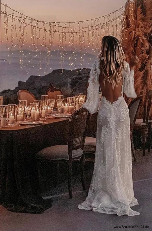 Rückenfreies Langarm Boho Standesamtkleid Hadia