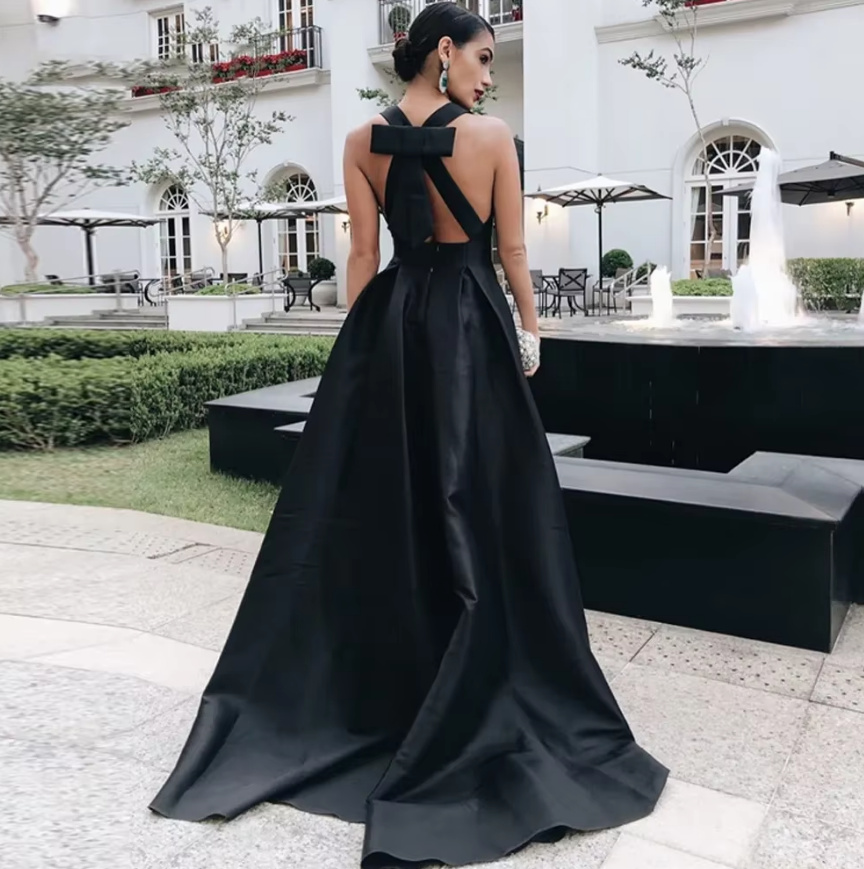 A Linie Satin Kleid Elegant für Hochzeitsgäste und Events in Schwarz Bodenlang