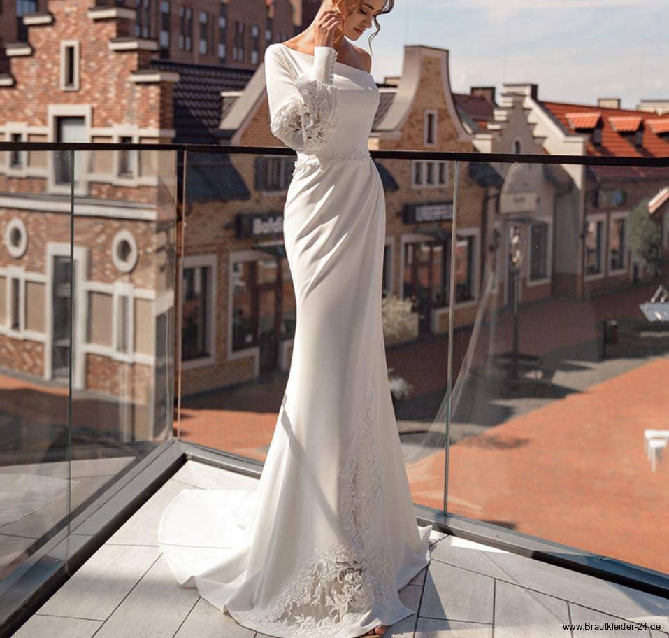Sexy One Shoulder Standesamtkleid Hanna für die Braut Bodenlang mit Spitze