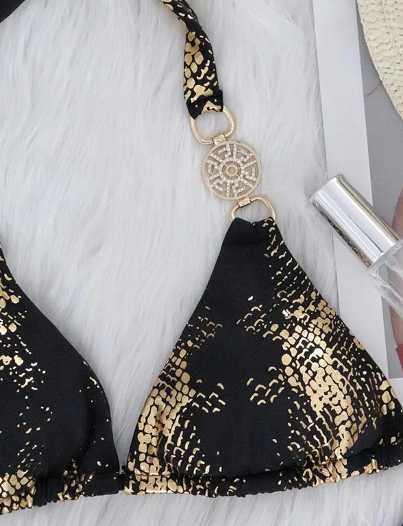 Brazilian Halterneck Bikini Sude Black Gold