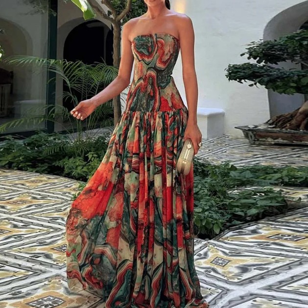 Schulterfreies Chiffon Maxi Kleid Emma Bunt
