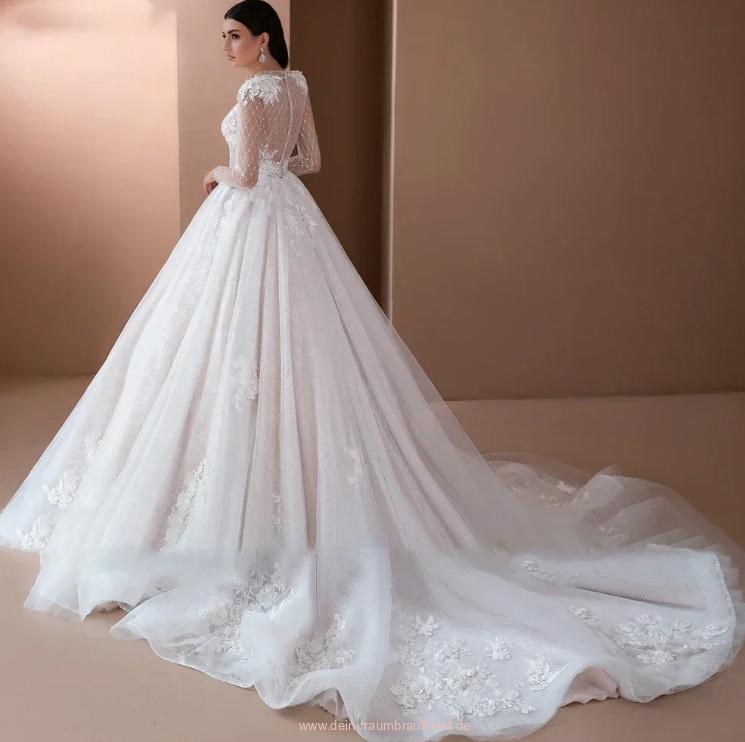Langarm Ball Linie Brautkleid Arabella mit Tattoo Blumen Spitze und Schleppe