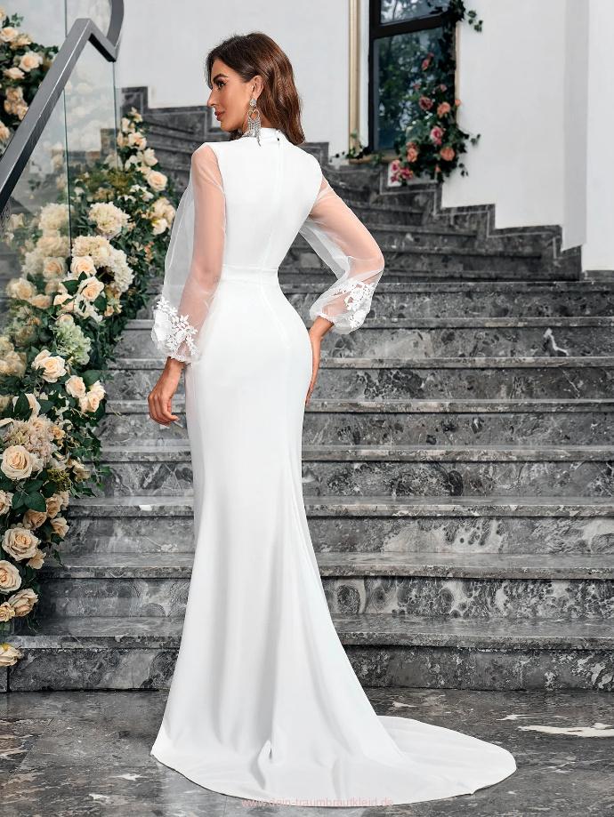 Meerjungfrau Langarm Standesamtkleid Ariel mit Tüll Ärmel und Schleppe