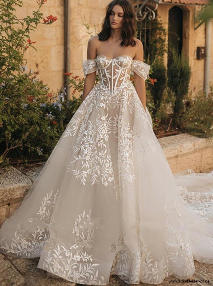Schulterfreies Prinzessin Brautkleid Hana mit Stickereien und Schleppe