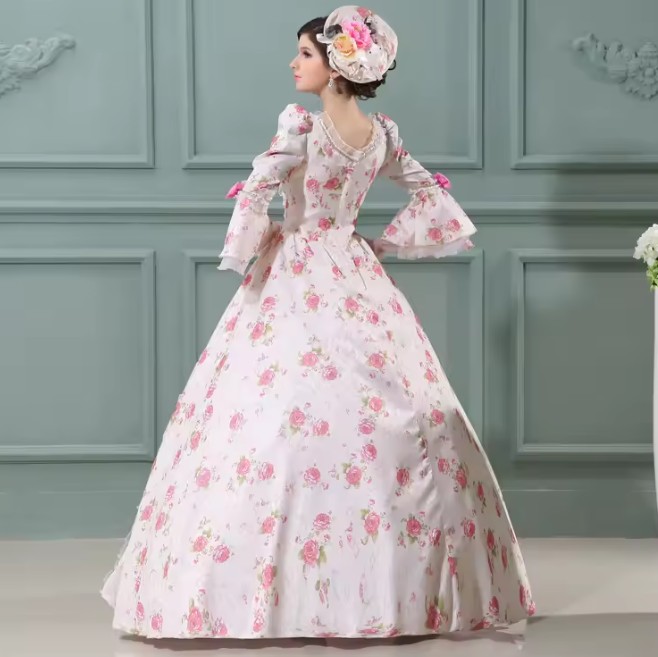 18 Jahrhundert Brautkleid Hanako in Ros mit Blumen