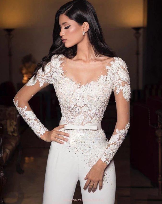 Langarm Bodycon Overall Einteiler für die Braut mit Tattoo Spitze und Rückenausschnitt