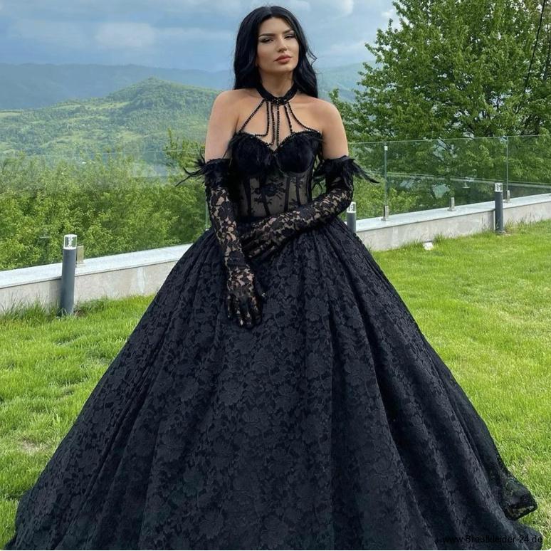 Ball-Linie Gothic Style Brautkleid in Schwarz mit Spitze
