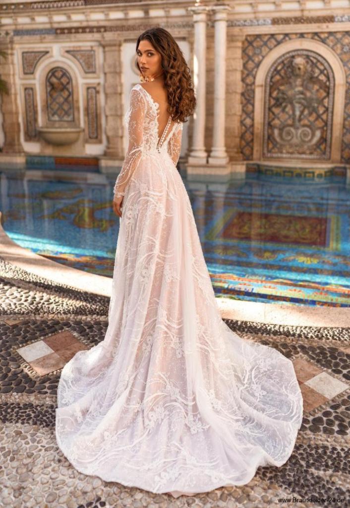 A-line long-sleeved wedding dress Ignatia with lace and train