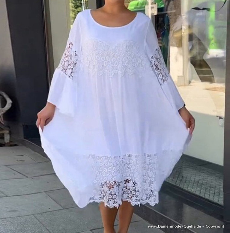 A-linie Hängerchen Sommerkleid Wadenlang in Weiß