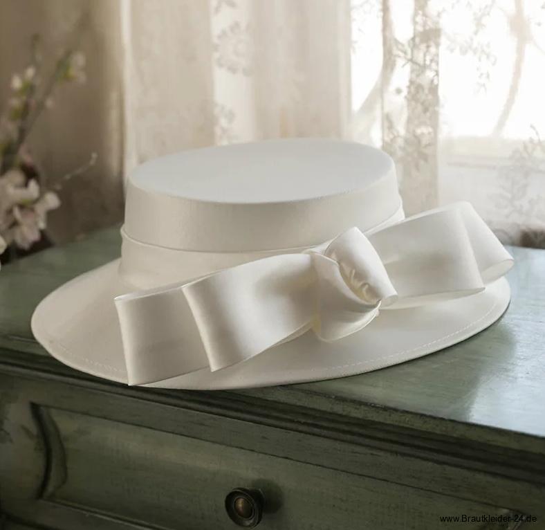 Satin Brauthut Kelani in Weiß mit Schärpe