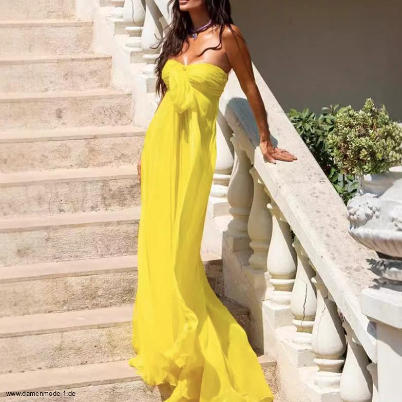 Schulterfreies Empire Chiffon Kleid Bodenlang Elegant in Gelb