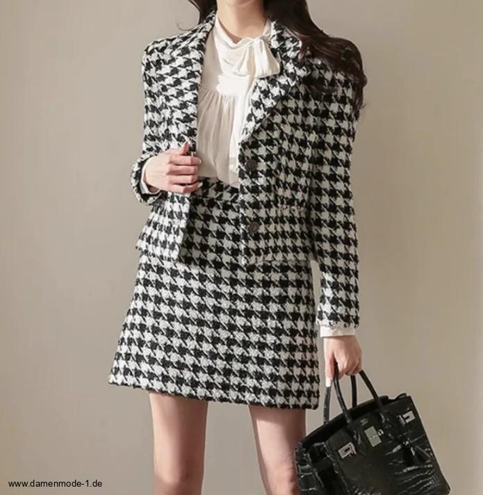Mini Tweed Damen Kostüm Baldrun Elegant in Schwarz Weiß