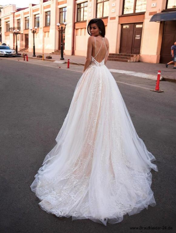 A-Linie Brautkleid Ileana mit Spaghettiträger und Rücken Ausschnitt